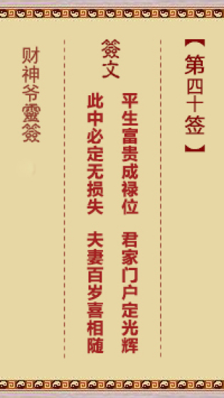 财神爷灵签 第四十首 庚午 郭子仪祝寿