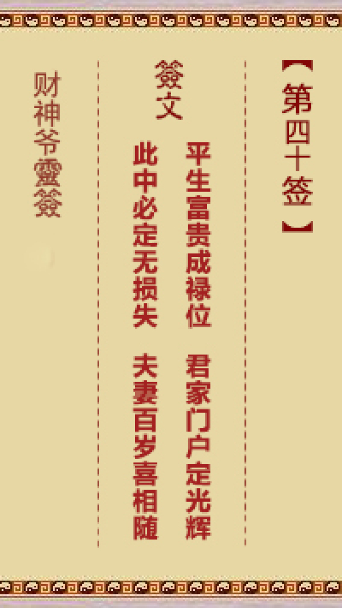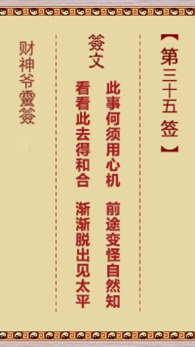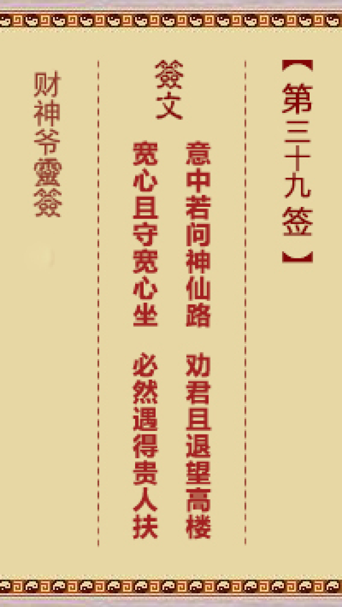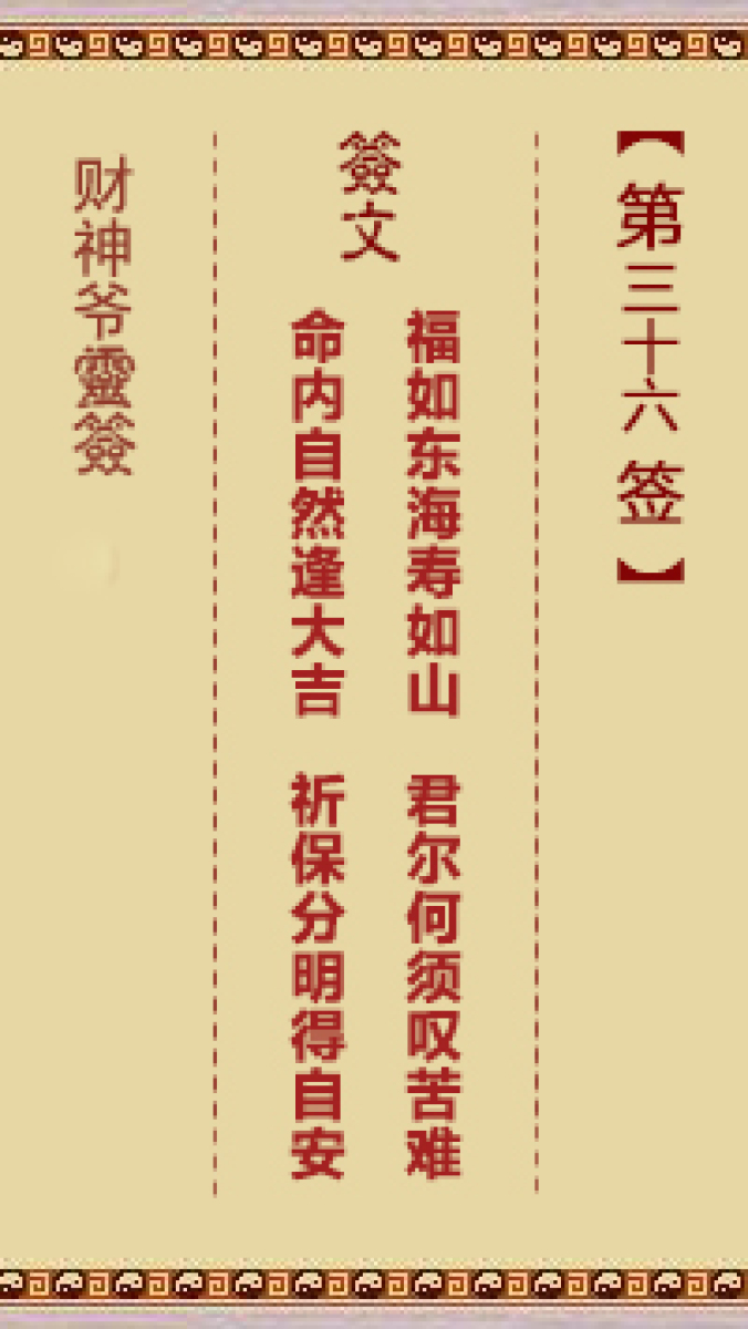财神爷灵签 第三十六首 已亥 崔文德祝寿长