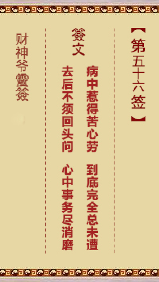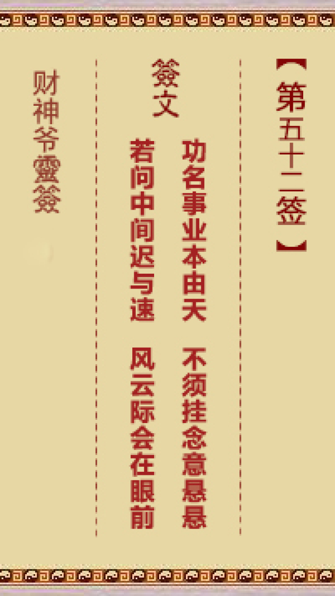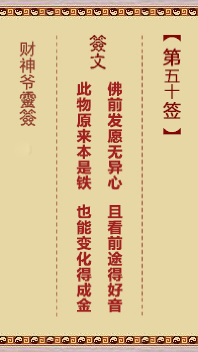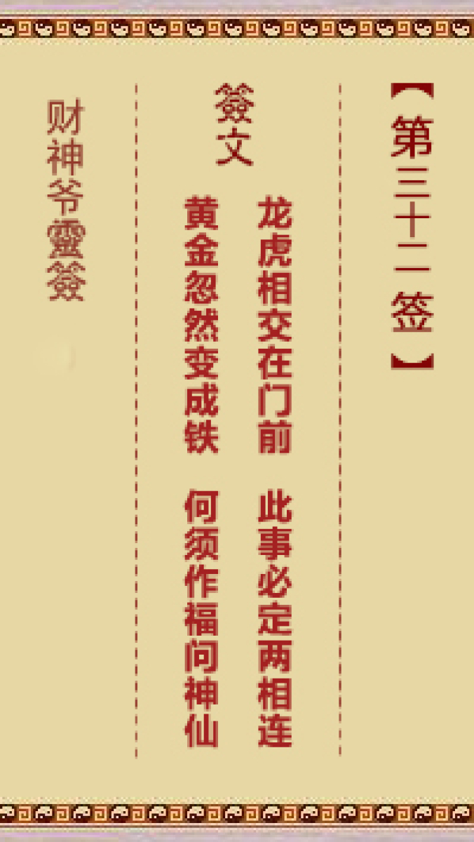 财神爷灵签 第三十六首 已亥 崔文德祝寿长