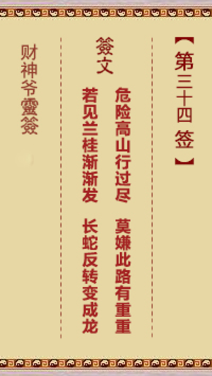 财神爷灵签 第三十四首 已未 朱寿昌寻亲母