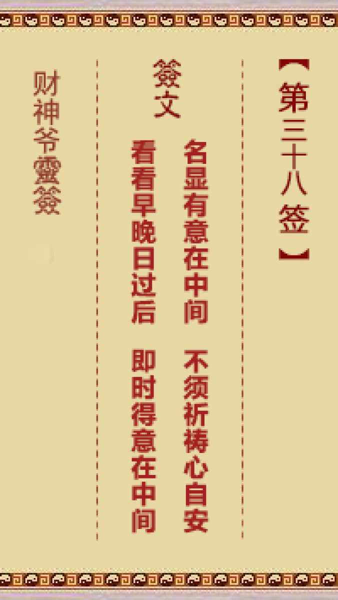 财神爷灵签 第三十八首 庚寅 陈三楼下得荔枝