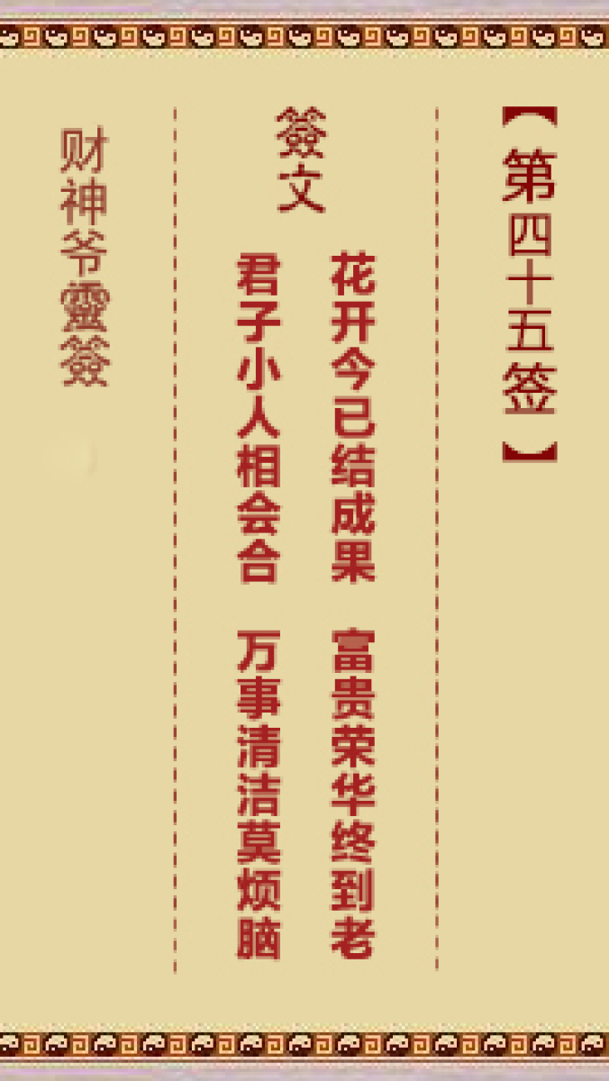 财神爷灵签 第四十二首 庚戍 郭子仪双拜寿