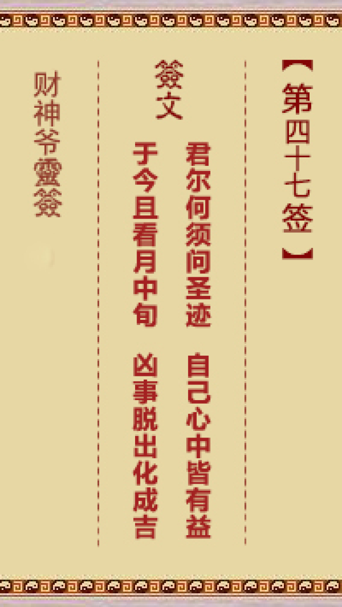 财神爷灵签 第四十七首 辛酉 王金真独行