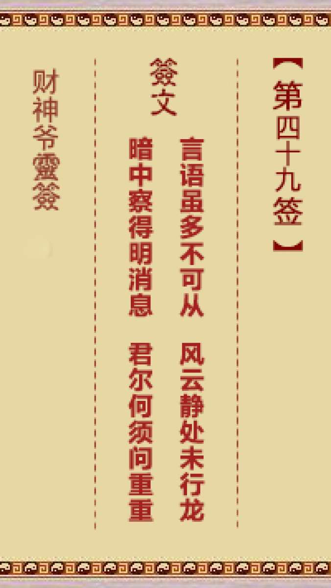 财神爷灵签 第四十九首 壬子 刘备三请孔明