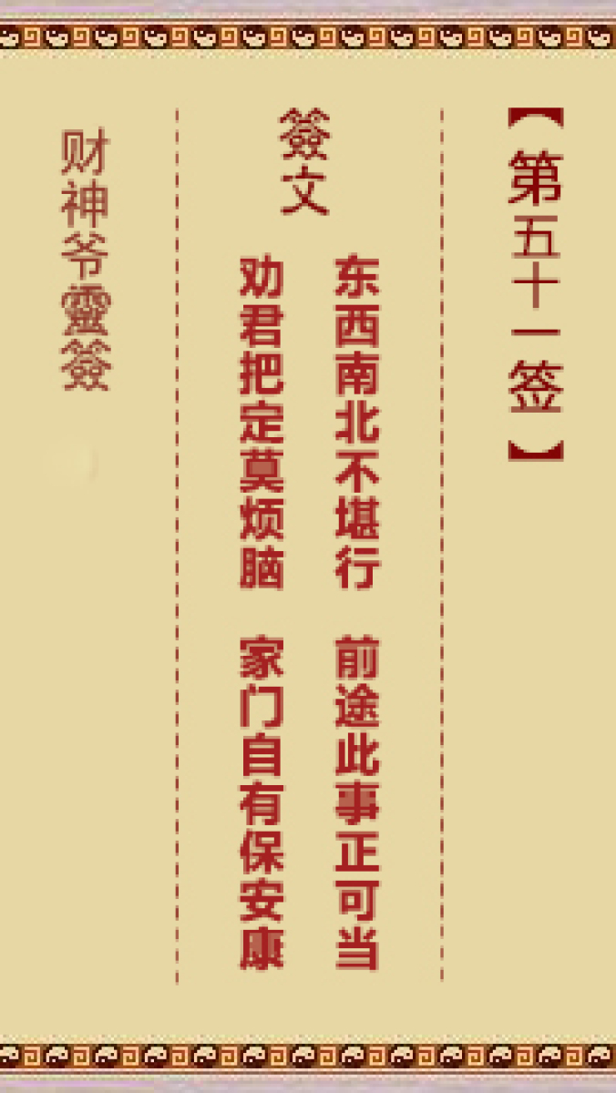 财神爷灵签 第五十一首 壬辰 唐三藏取经