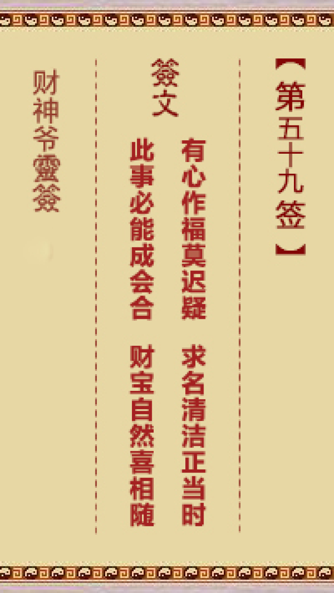 财神爷灵签 第五十九首 癸酉 管仲鲍叔为贾