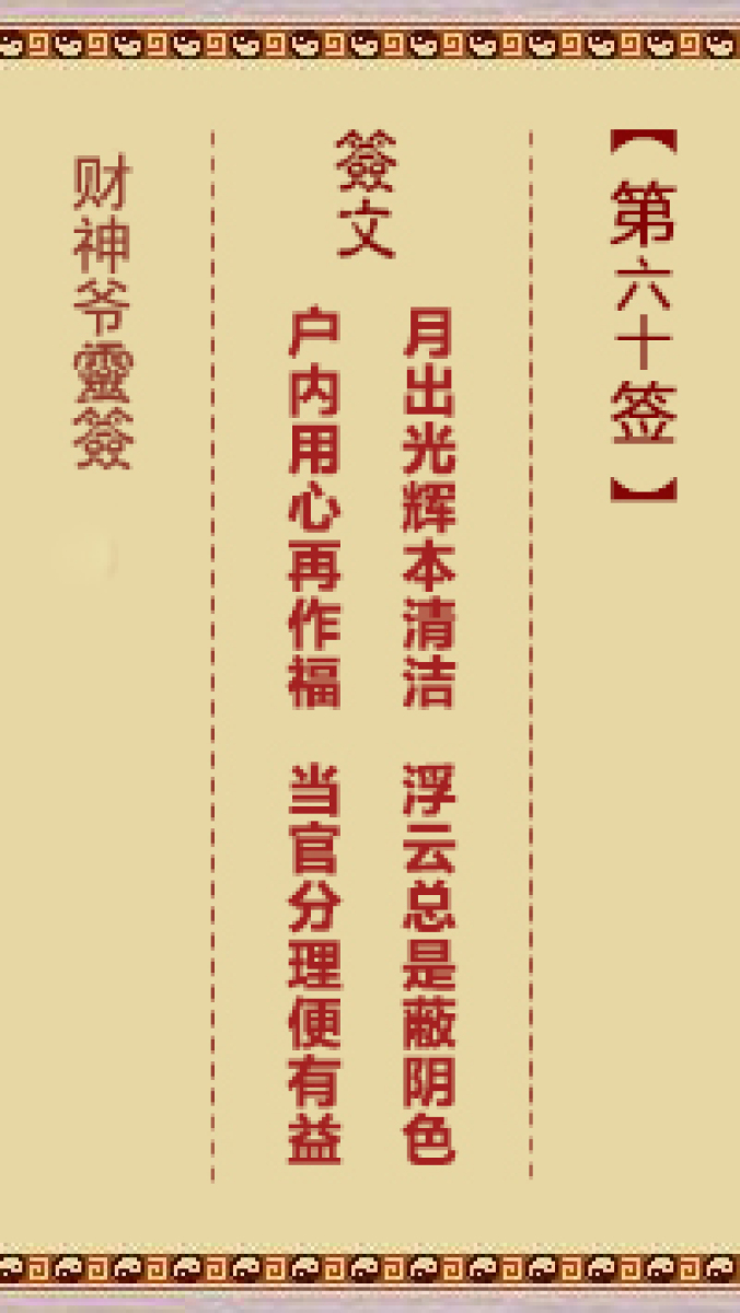 财神爷灵签 第四十六首 辛未 狄仁杰后作相