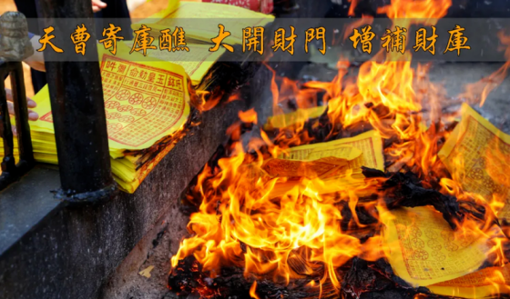 《灵宝天尊说禄库受生经》载,十方一切众生,命属天曹,身系地府,当得人身之日,曾于地府所属冥司,借贷禄库受生钱财使用。伏望,云骖莅止,遵玉敕之崇严,月驷来游,赴瑶坛之峻极。罪消北府,名列南昌。金箓定籍,玉字除殃。月陛九成,翔凤盘旋于旋璐。