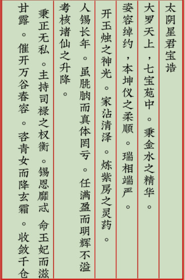 太阴星君同太阳星君等为上清天轮宫主照三界的十一位大星君之一。道教认为太阴星君司掌水府,明分昼夜,校籍众生,掌人魂魄,赐福消灾。本站重点给大家讲解下道家宝诰太阴星君宝诰,道家太阴星君宝诰原文全经文介绍。我国古代男女热恋时在月下盟誓定情,拜祷太阴星君。太阴星君宝诰至心皈命礼。