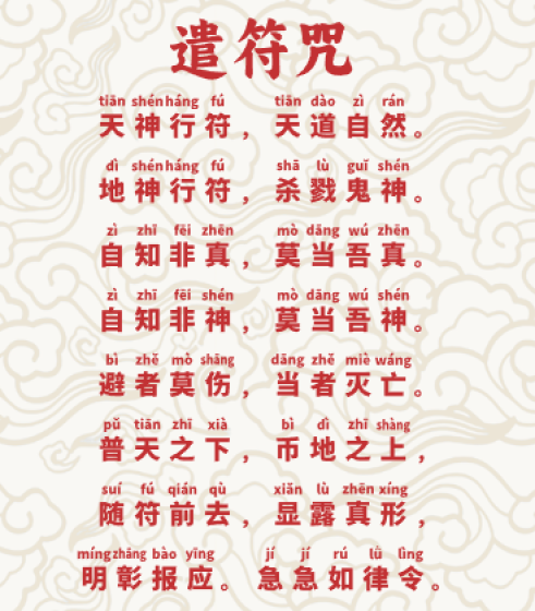 道教神咒符咒咒语遣符咒是道教比较重要和有名的咒语。遣符咒解析遣符就是发布符命的意思。道教信众都知道教内传承有许多符咒咒语,在道藏经籍中被大量地保存,在斋醮科仪活动中被大量地使用,以表述道教的教义精神。道教的斋醮科仪是沟通人神的神圣程序或过程,是道教信仰的方式,而不是文娱表演的闹剧。
