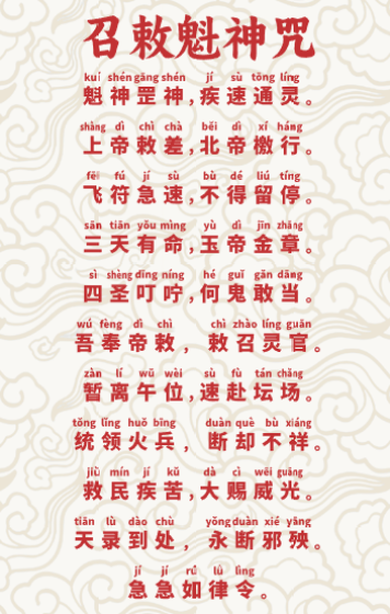 道教神咒符咒咒语召敕魁神咒是道教比较重要和有名的咒语。召敕魁神咒原文魁神罡神,疾速通灵。召敕魁神咒解析魁神,指河魁,月内凶神。民间认为魁冈之月及其所系之地,忌修造,切不得动土。道教信众都知道教内传承有许多符咒咒语,在道藏经籍中被大量地保存,在斋醮科仪活动中被大量地使用,以表述道教的教义精神。