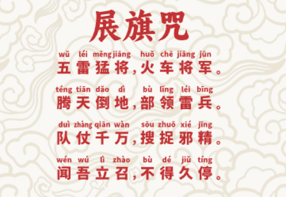 道教神咒符咒咒语展旗咒是道教比较重要和有名的咒语。本站重点给大家讲解下道教神咒符咒咒语展旗咒介绍,道教神咒展旗咒咒语。展旗咒解析展旗就是展开旗帜之意。此展旗咒主要是赞颂雷部王灵官领兵旆旗招展之景。道教认为王灵官是先天主将,一气神君。