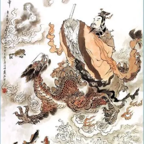 真武大帝又称玄武大帝,在《楚辞·远游》中,玄武被注释为北方神的名字。在《史记·天官书》中,它被描述为北宫玄武,与虚危二宿相关,其中危宿被认为与盖屋有关。在《重修纬书集成》卷六《河图》中,北方黑帝被赋予了神名叶光纪,其精华为玄武。