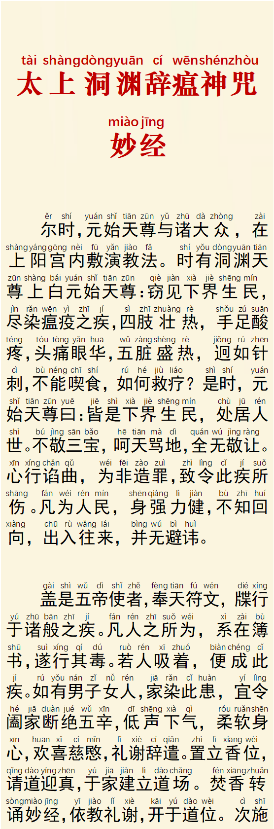 道教经典《太上洞渊辞瘟神咒妙经》,道教经文《太上洞渊辞瘟神咒妙经》解析