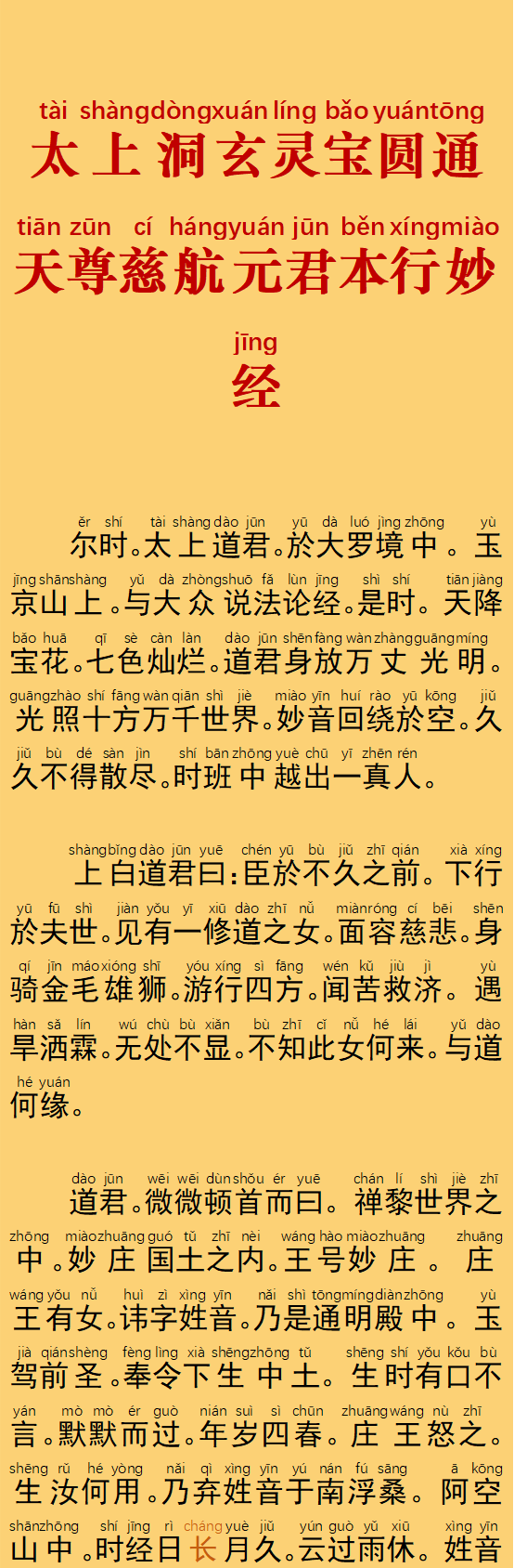 道教经典《太上洞玄灵宝圆通天尊慈航元君本行妙经》,道教经文《太上洞玄灵宝圆通天尊慈航元君本行妙经》解析