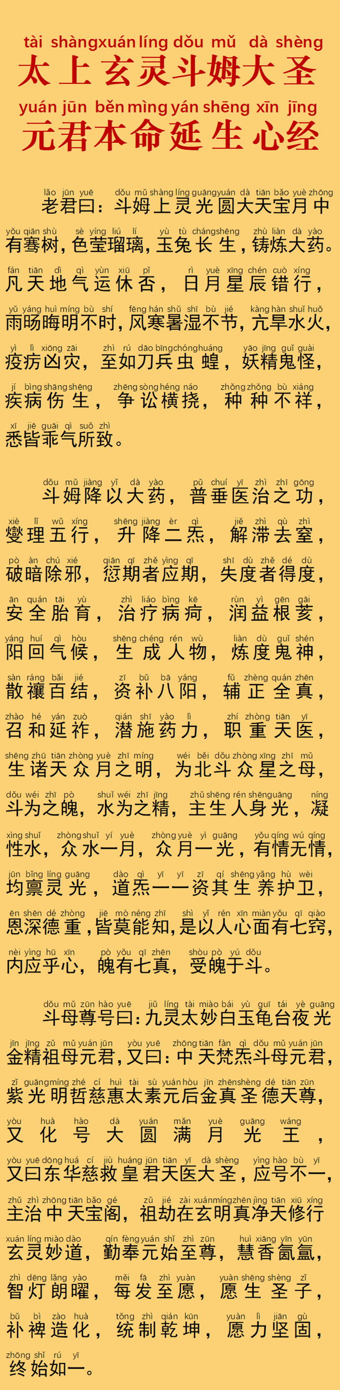道教经典《太上玄灵斗姆大圣元君本命延生心经》,道教经文《太上玄灵斗姆大圣元君本命延生心经》解析