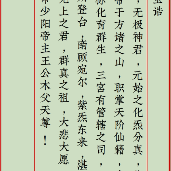 宝诰可以清诵、可以讽唱,可视为道家的“赞美诗”、“赞歌”。宝诰首句,皆以“志(至)心皈命礼”为开头,表示虔诚;最后一句多为神仙被封为的名号。