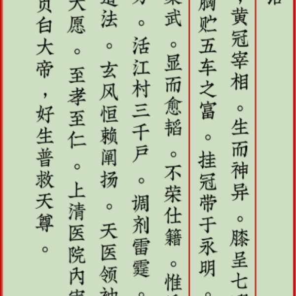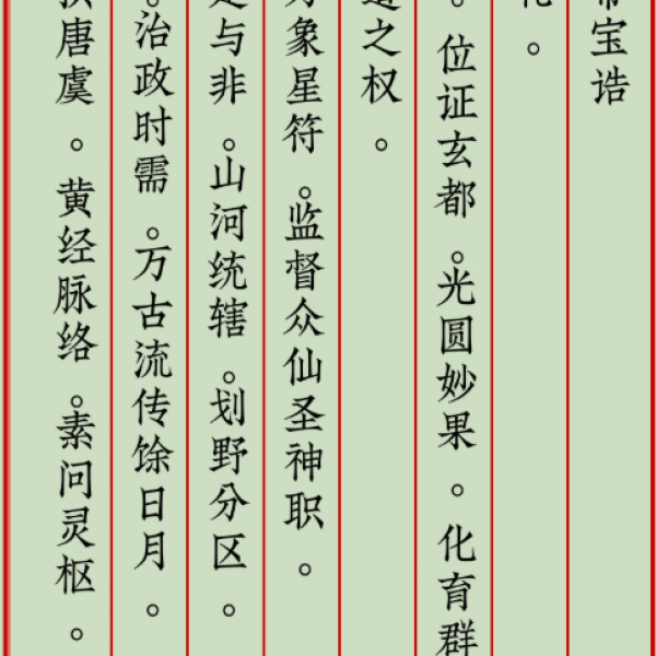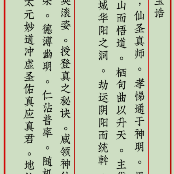 宝诰,是赞颂神仙的骈文,一种道家的特定文体。宝诰的平仄韵律十分严谨,以歌咏形式赞美叙述道家神仙们修行以及功德显化的典故。