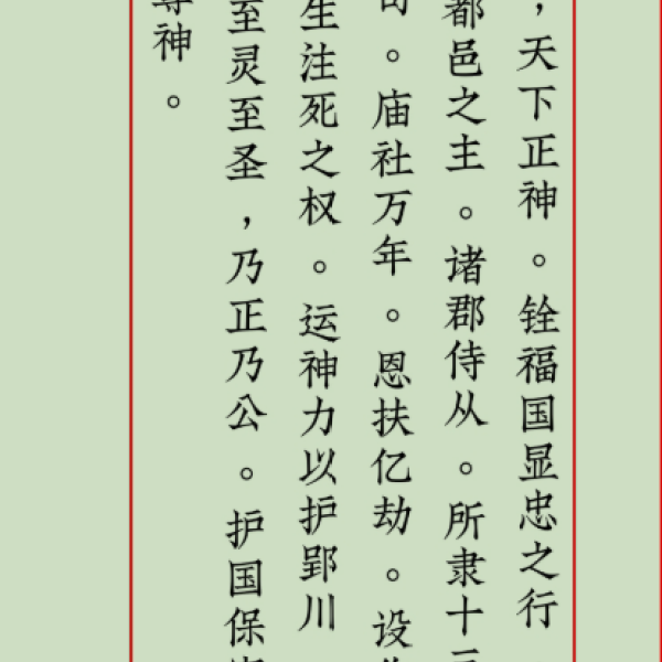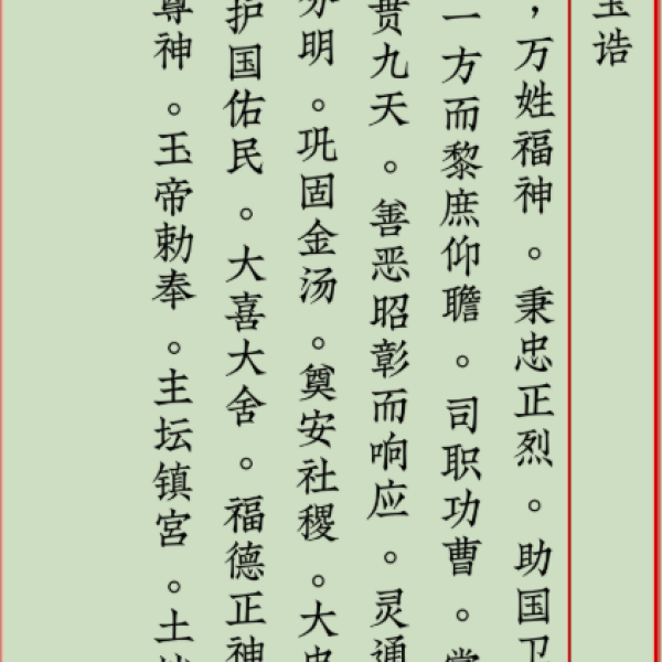 玄女娘娘“恭行天律,部领雷兵。如有下界精邪,北阴午酉,出没岩穴,蟠踞山林,窥阚家庭,损伤人命,神威所到,一切扫除,福佑生人,肃清魔魅。”